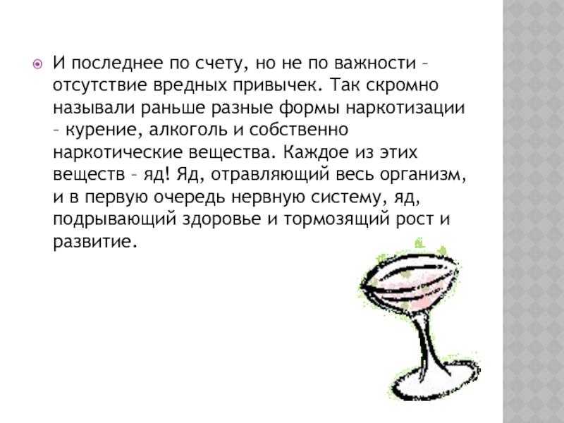 Слайд 17И последнее по счету, но не по важности – отсутствие вредных