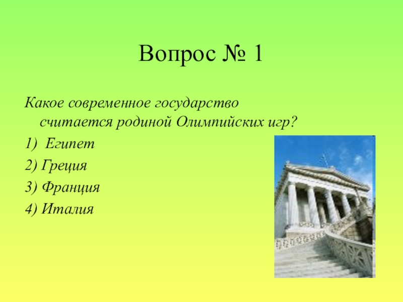Слайд 30Вопрос № 1