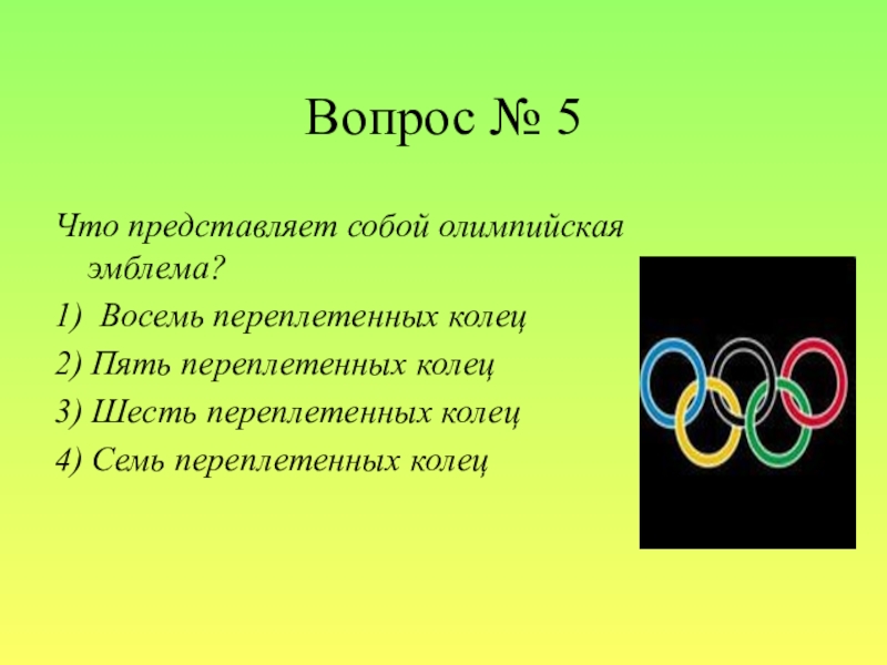 Слайд 7Вопрос № 5