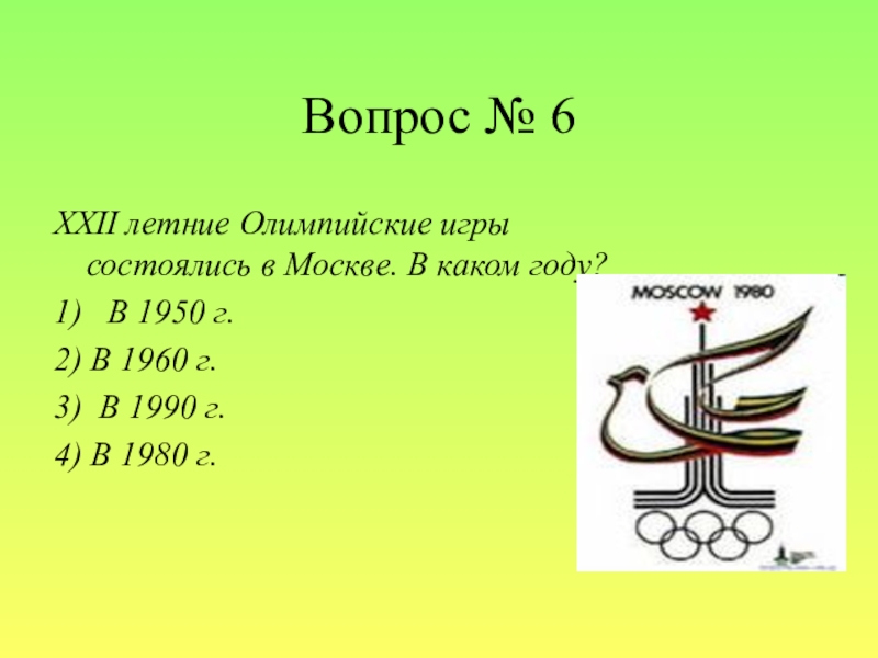 Слайд 8Вопрос № 6