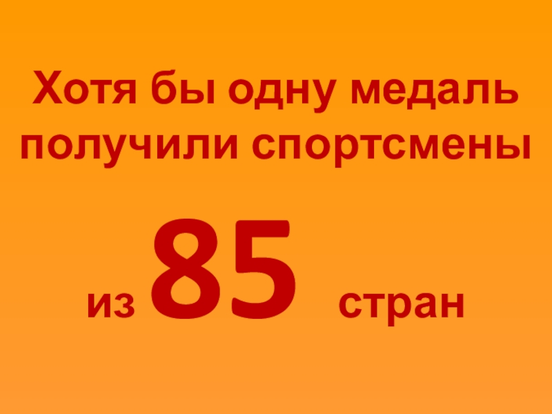 Слайд 7Хотя бы одну медаль получили спортсмены из 85 стран