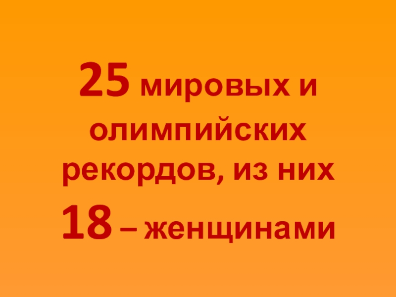 25 мировых и олимпийских рекордов, из них 18 – женщинами