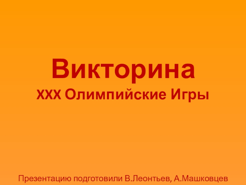 ВикторинаXXX Олимпийские ИгрыПрезентацию подготовили В.Леонтьев, А.Машковцев
