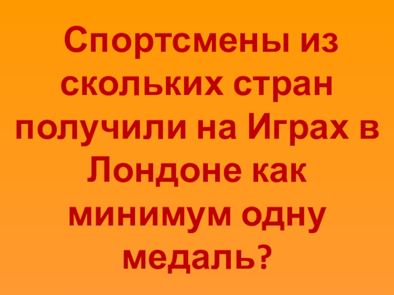 Слайд 6 Спортсмены из скольких стран получили на Играх в Лондоне как