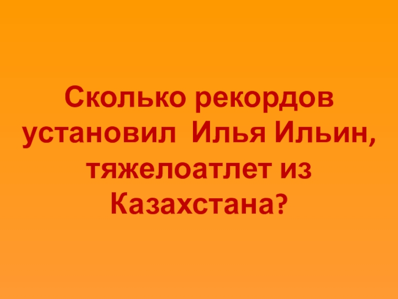 Слайд 16Сколько рекордов установил Илья Ильин, тяжелоатлет из Казахстана?