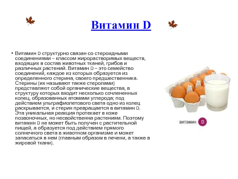 Витамин D структурно связан со стероидными соединениями – классом жирорастворимых