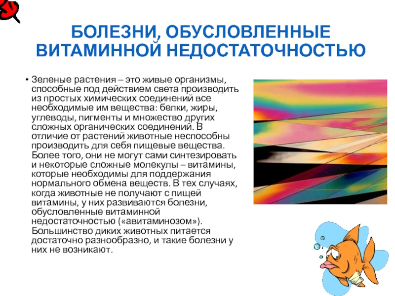 Слайд 6БОЛЕЗНИ, ОБУСЛОВЛЕННЫЕ ВИТАМИННОЙ НЕДОСТАТОЧНОСТЬЮ