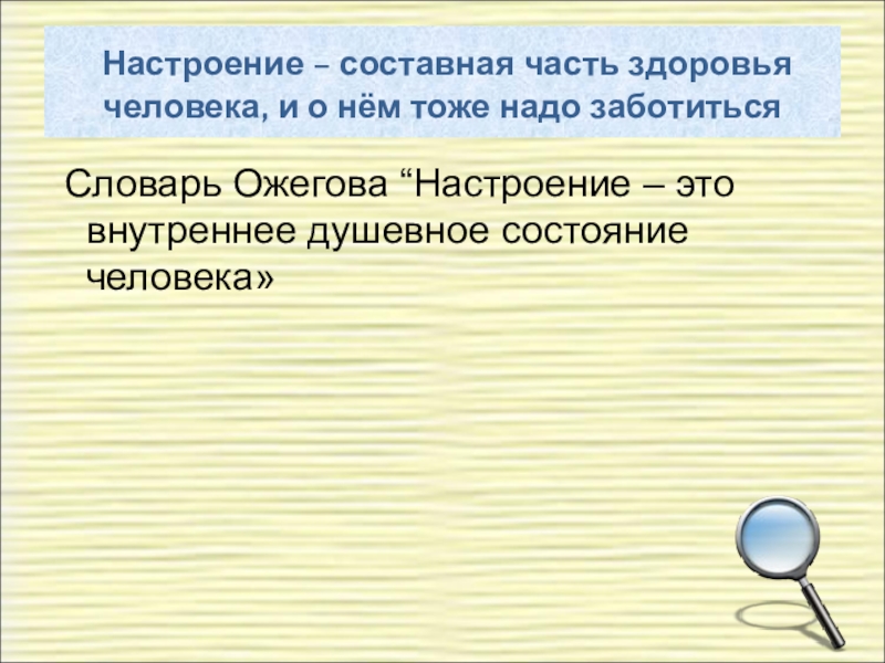 Словарь Ожегова “Настроение – это внутреннее душевное состояние человека»