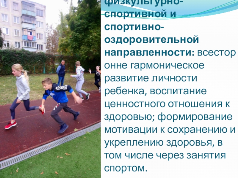 Слайд 4Цель внеурочной деятельности по физкультурно-спортивной и спортивно- оздоровительной направленности: всесторонне гармоническое развитие личности