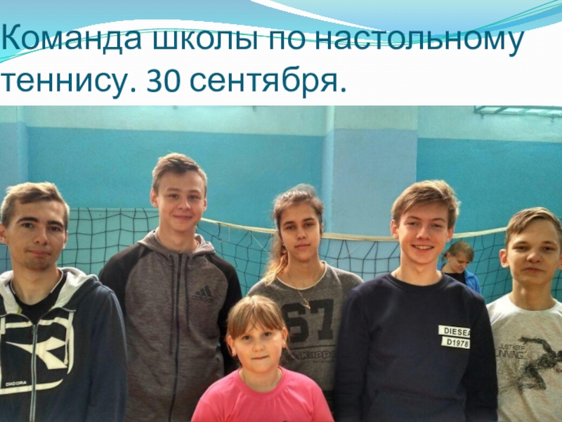 Слайд 23Команда школы по настольному теннису. 30 сентября.