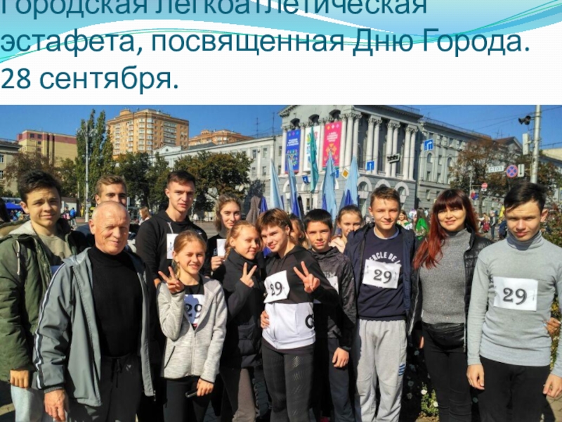 Слайд 24Городская легкоатлетическая эстафета, посвященная Дню Города. 28 сентября.