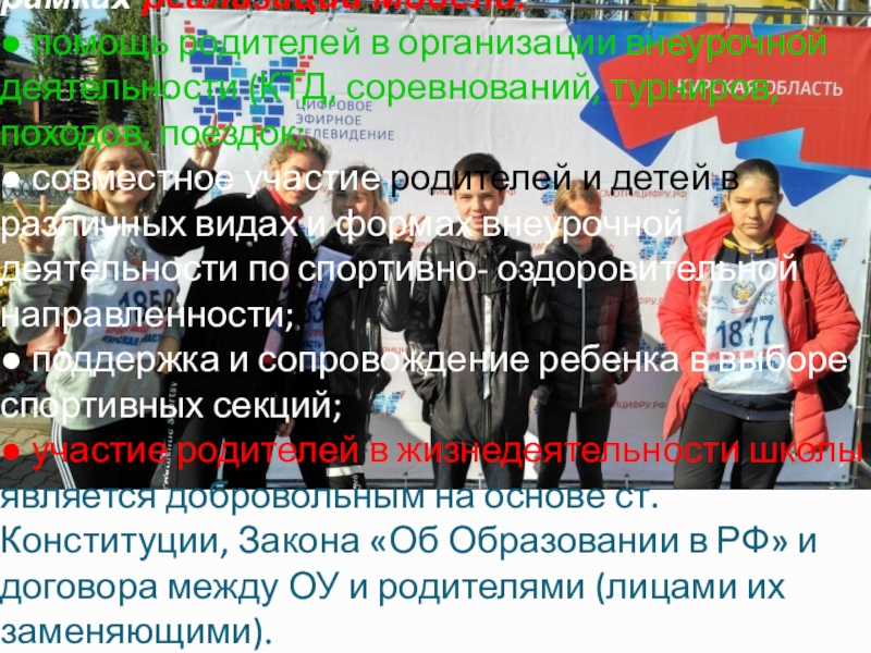● участие родителей в жизнедеятельности школы является добровольным на основе ст. Конституции, Закона «Об Образовании в РФ» и договора между ОУ и родителями (лицами их заменяющими).
