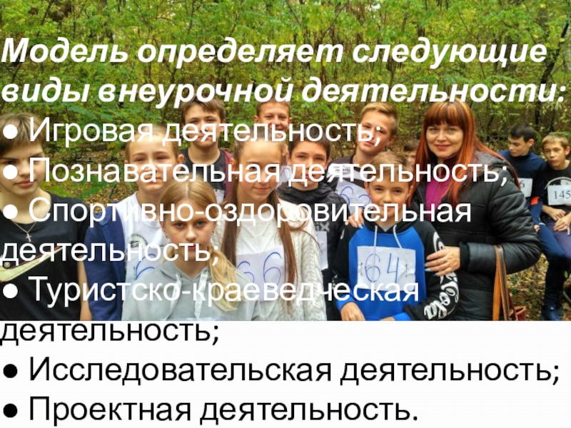 Слайд 9Модель определяет следующие виды внеурочной деятельности: