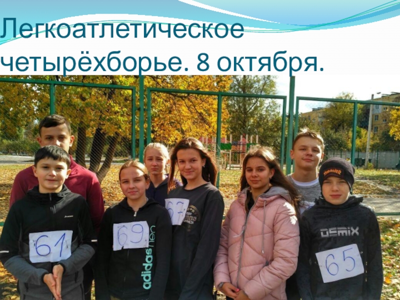 Слайд 15Легкоатлетическое четырёхборье. 8 октября.