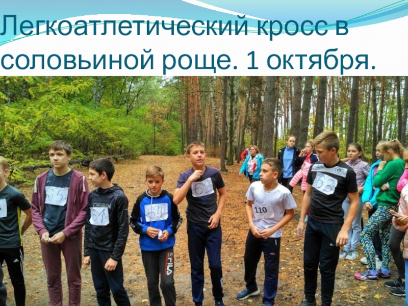 Слайд 20Легкоатлетический кросс в соловьиной роще. 1 октября.