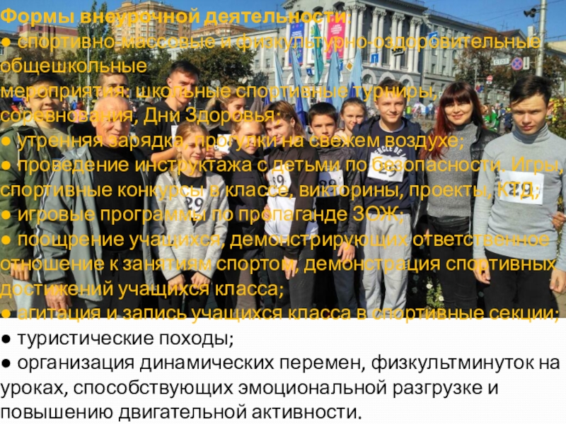 регулярное проведение спортивно-оздоровительных мероприятий (дней здоровья, соревнований, олимпиад, походов и т. п.).