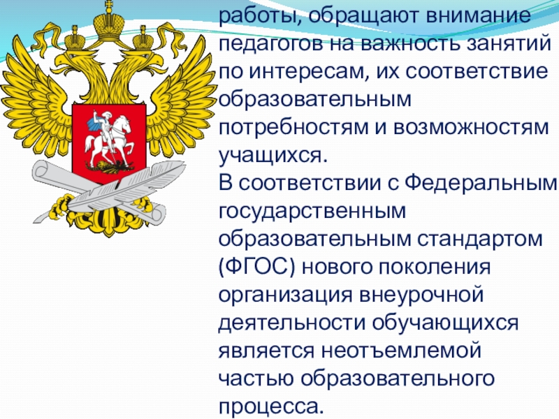 Слайд 3Новые ФГОС предполагают возрастание роли внеурочной работы, обращают внимание педагогов на