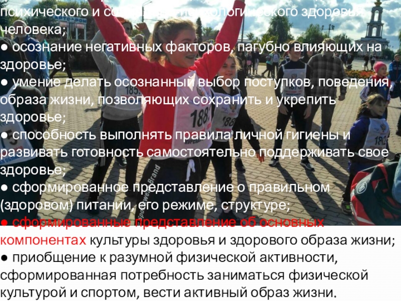 ● осознание негативных факторов, пагубно влияющих на здоровье;