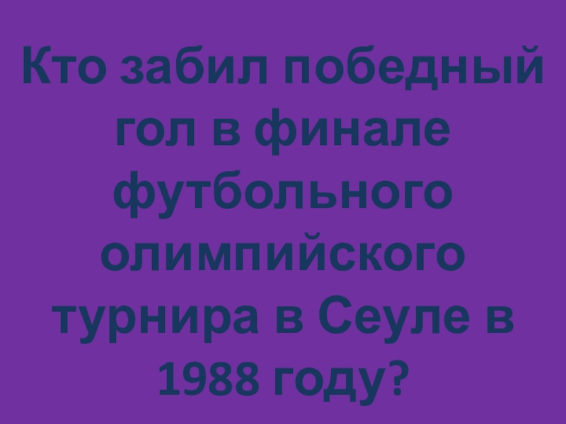 Слайд 2Кто забил победный гол в финале футбольного олимпийского турнира в Сеуле