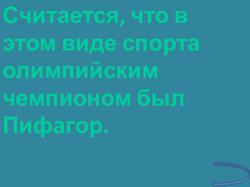 Слайд 7Считается, что в этом виде спорта олимпийским чемпионом был Пифагор.