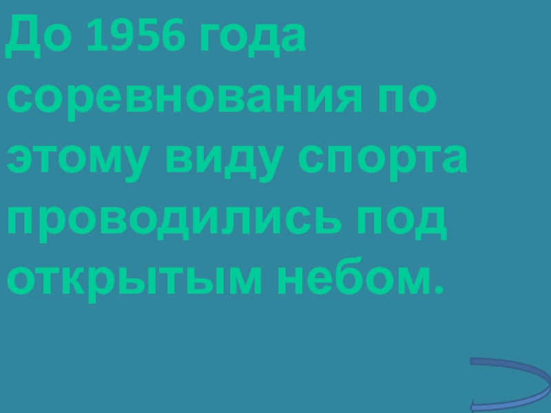 Слайд 20До 1956 года соревнования по этому виду спорта проводились под открытым