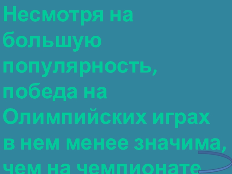 Слайд 21Несмотря на большую популярность, победа на Олимпийских играх в нем менее
