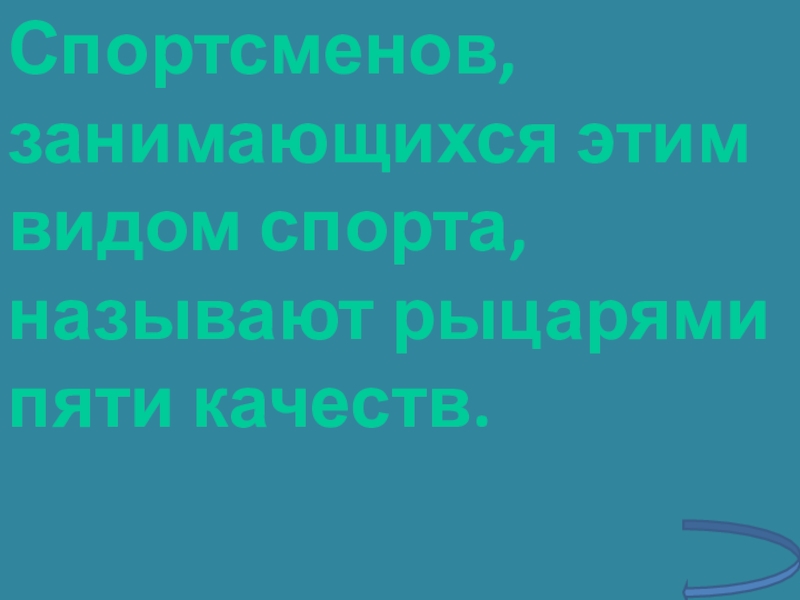 Слайд 23Спортсменов, занимающихся этим видом спорта, называют рыцарями пяти качеств.