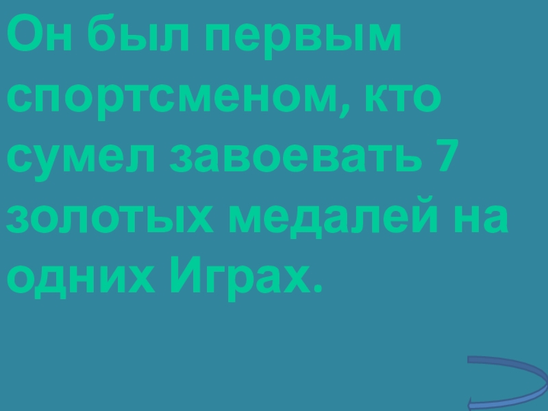 Слайд 33Он был первым спортсменом, кто сумел завоевать 7 золотых медалей на
