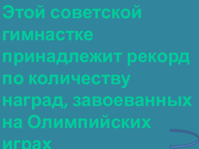 Слайд 24Этой советской гимнастке принадлежит рекорд по количеству наград, завоеванных на Олимпийских