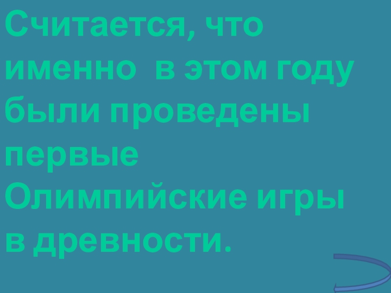Слайд 4Считается, что именно в этом году были проведены первые Олимпийские игры