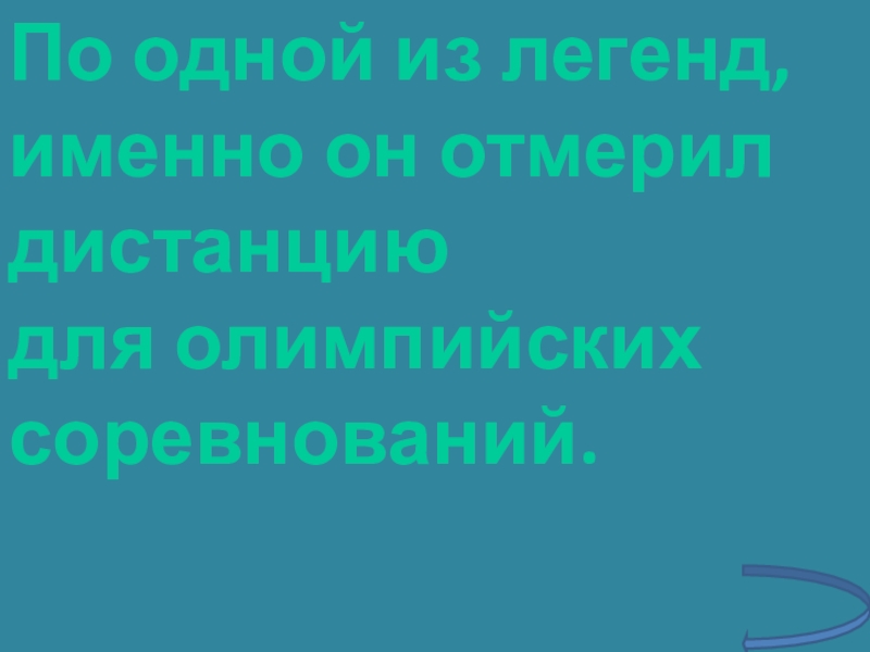 Слайд 5По одной из легенд, именно он отмерил дистанцию