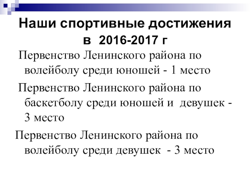 Ежегодно учащиеся спортивных секций принимают участие в соревнованиях районного занимают призовые места в Первенстве Ленинского района.