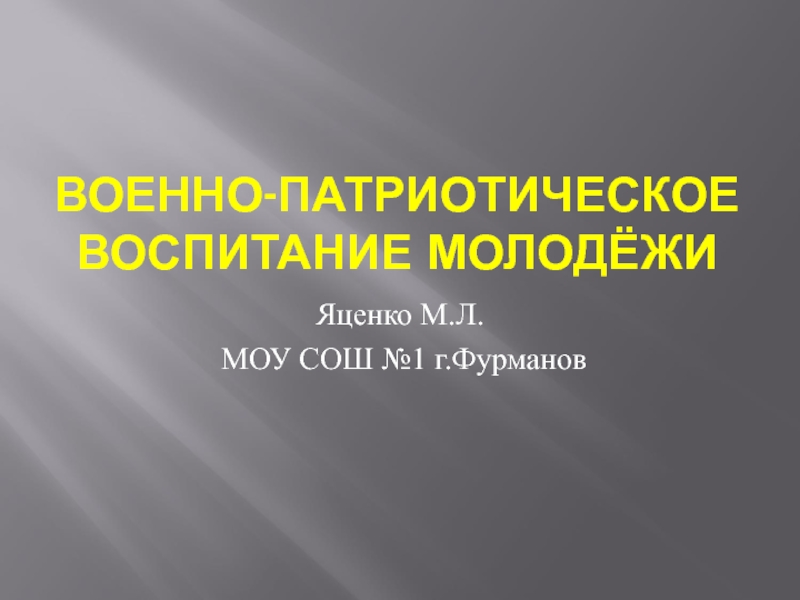 ВОЕННО-ПАТРИОТИЧЕСКОЕ ВОСПИТАНИЕ МОЛОДЁЖИЯценко М.Л. МОУ СОШ №1 г.Фурманов