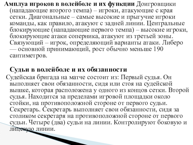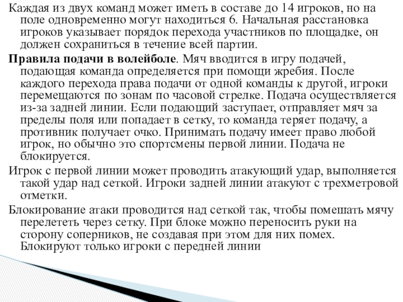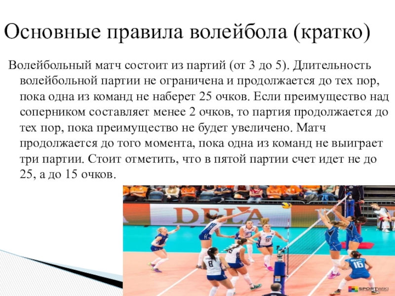 Основные правила волейбола (кратко)