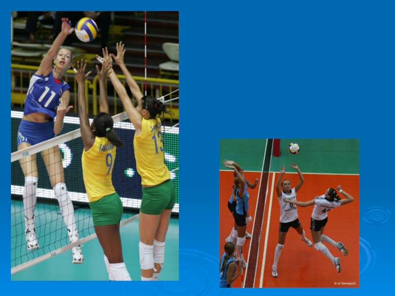 Двое центральных блокирующих, или нападающие первого темпа бьют с коротких прострельных передач.