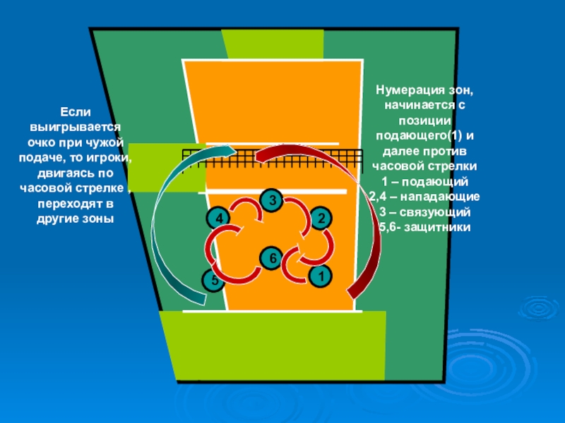 Если выигрывается очко при чужой подаче, то игроки, двигаясь по часовой стрелке , переходят в другие зоны