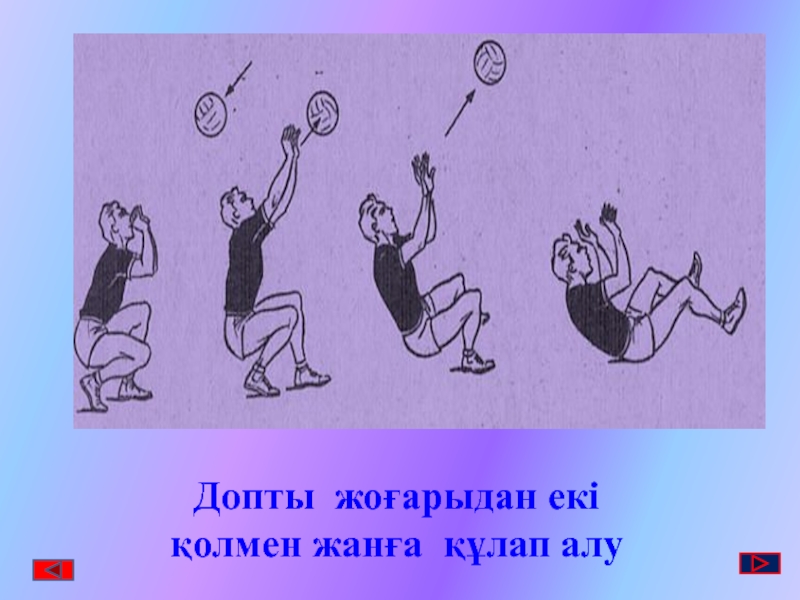 Слайд 95. Допты төменнен тіке тура беру арқылы ойынға қосу.