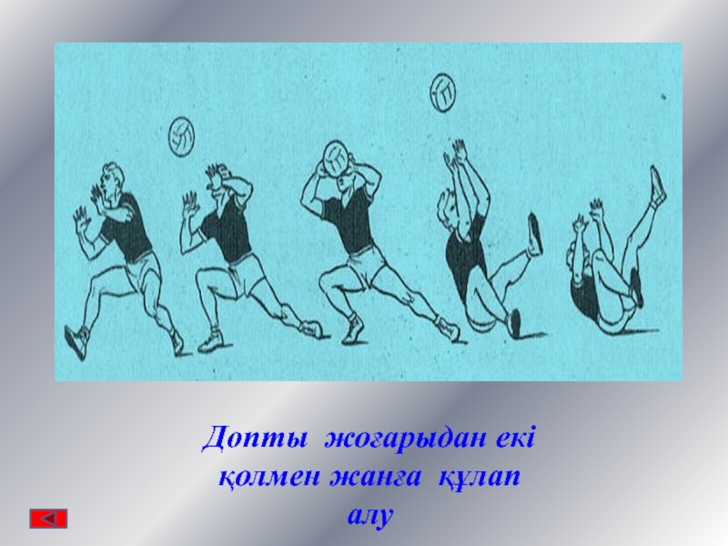 Слайд 10Ұшып келе жатқан доптың шапшаңдығына сәйкес қолын жәй ғана тосады және