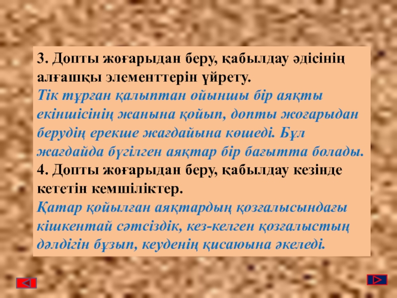 4. Допты жоғарыдан беру, қабылдау кезінде кететін кемшіліктер.