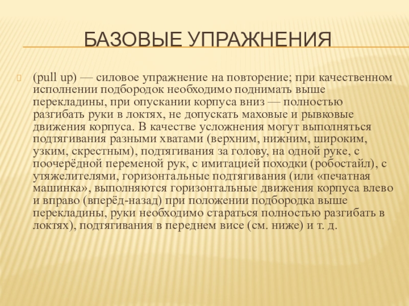 (pull up) — силовое упражнение на повторение; при качественном исполнении подбородок