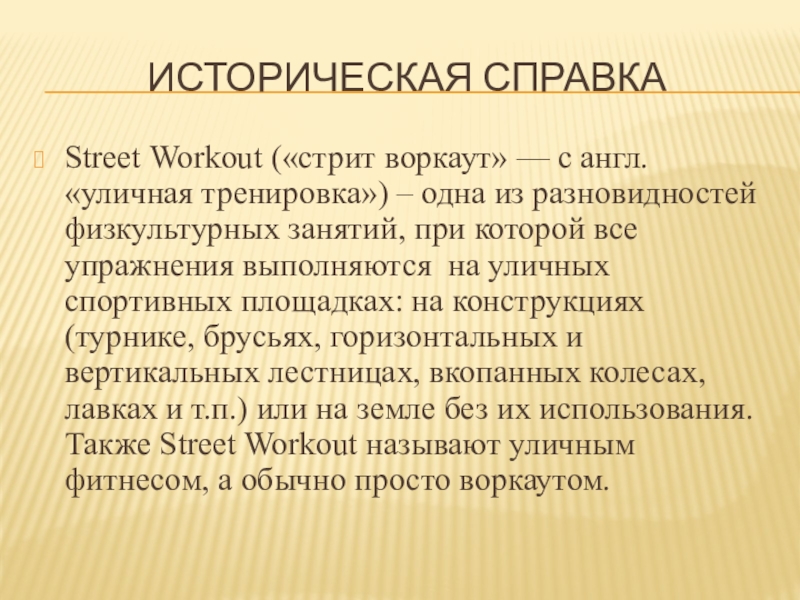 Street Workout («стрит воркаут» — с англ. «уличная тренировка») –