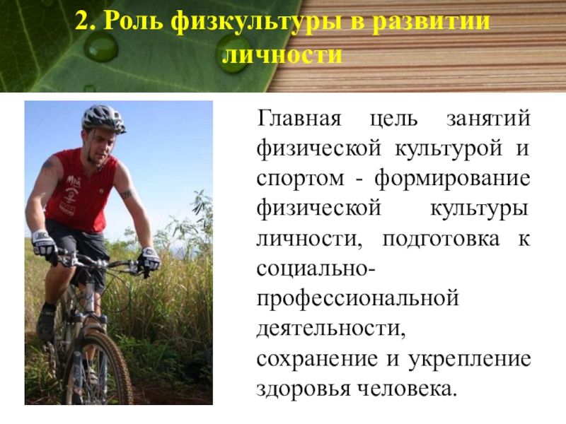 спортом - формирование физической культуры личности, подготовка к социально-профессиональной деятельности, сохранение и укрепление здоровья человека.