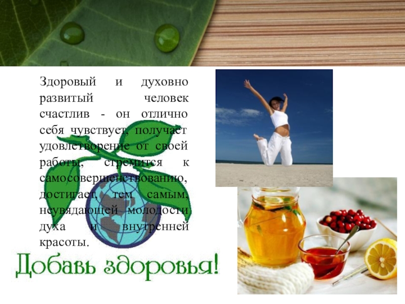 Слайд 7Здоровый и духовно развитый человек счастлив - он отлично себя чувствует,