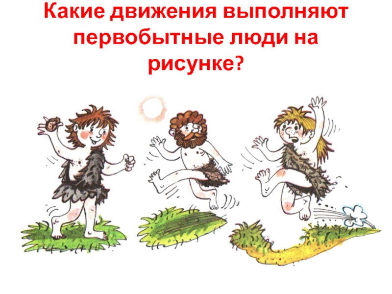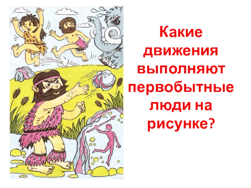 Слайд 4Какие движения выполняют первобытные люди на рисунке?
