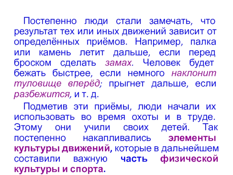 Слайд 5Постепенно люди стали замечать, что результат тех или иных движений зависит
