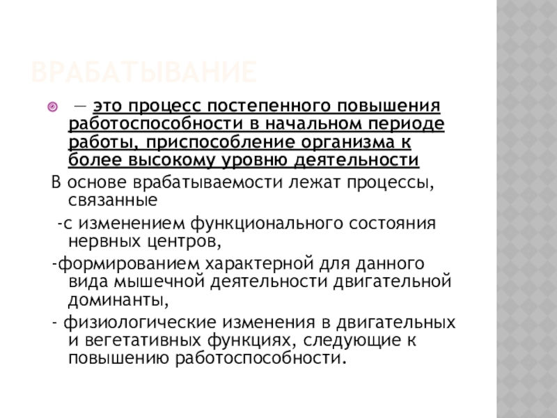 — это процесс постепенного повышения работоспособности в начальном периоде работы, приспособление