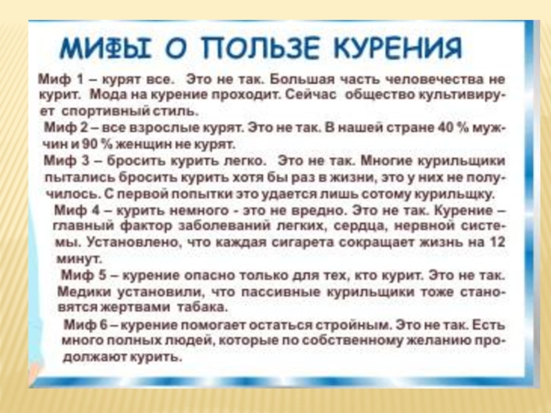 времени, интересного и содержательного отдыха - все это, разумеется, противостоит развитию вредных привычек, и, прежде всего привычек к употреблению алкоголя и табачных изделий.