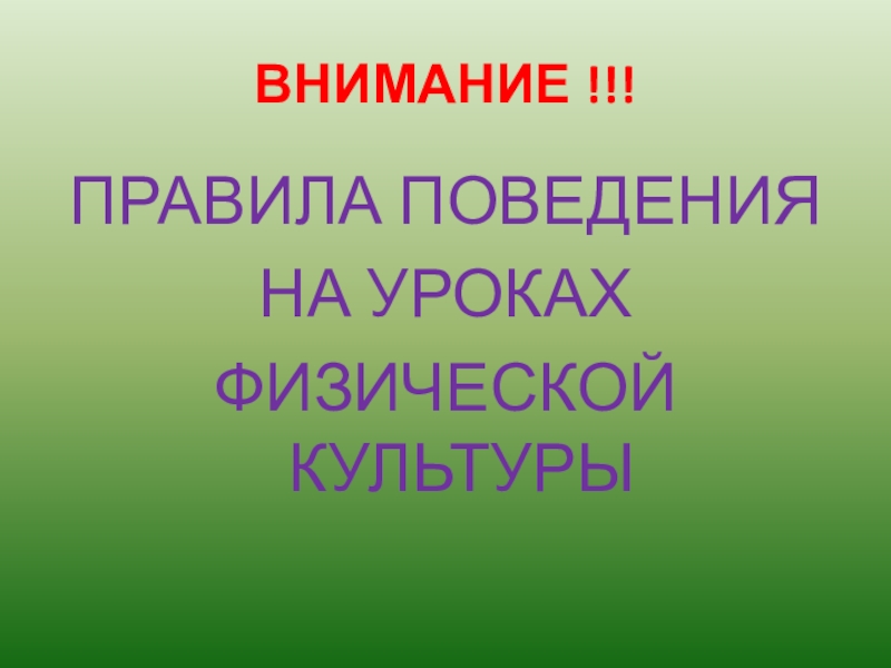 ВНИМАНИЕ !!!ПРАВИЛА ПОВЕДЕНИЯ НА УРОКАХФИЗИЧЕСКОЙ КУЛЬТУРЫ