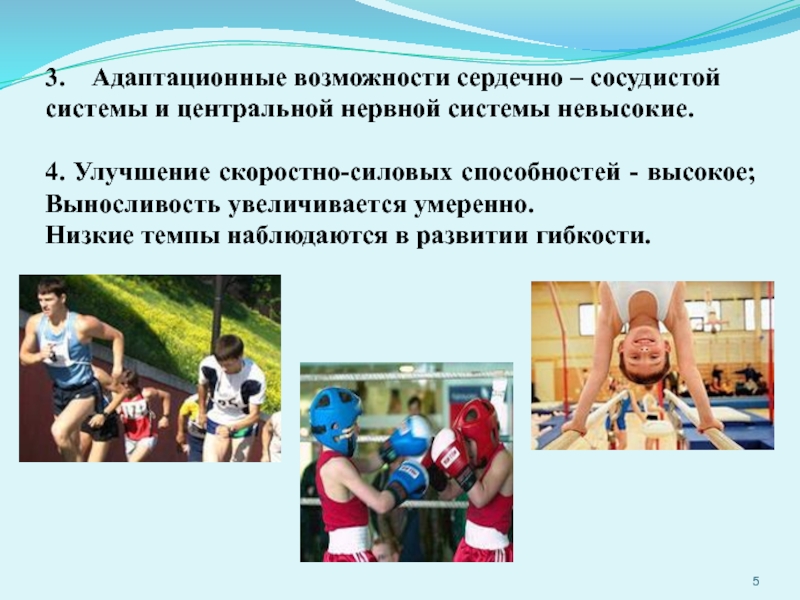 Быстрыми темпами развивается мышечная система. Мышечная масса особенно интенсивно нарастает у мальчиков в 13-14 лет, у девочек в 11-12 лет.