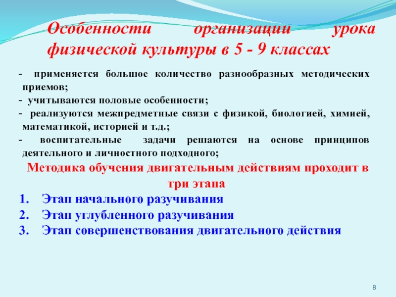 Правильное физическое воспитание учеников – необходимое условие развития всего организма